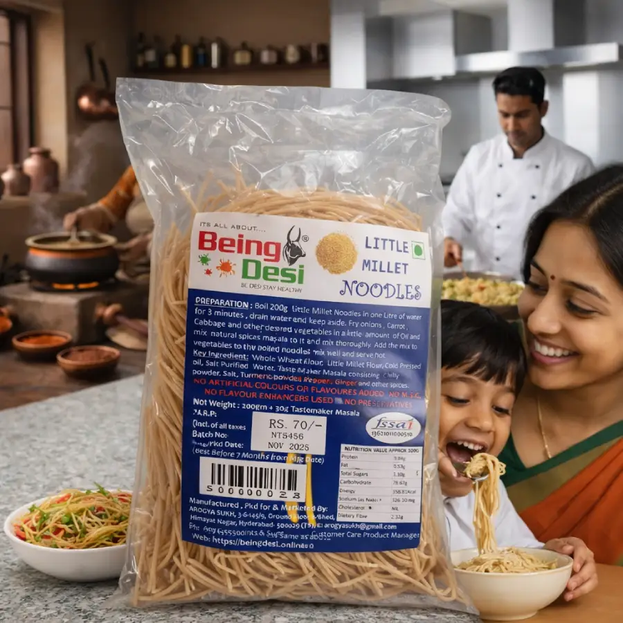 Little Millet Noodles are a healthy alternative to regular noodles, made from nutrient-rich little millets. High in fibre, easy to digest, and free from maida, preservatives, and artificial additives, they are perfect for quick, tasty, and wholesome meals for the entire family.